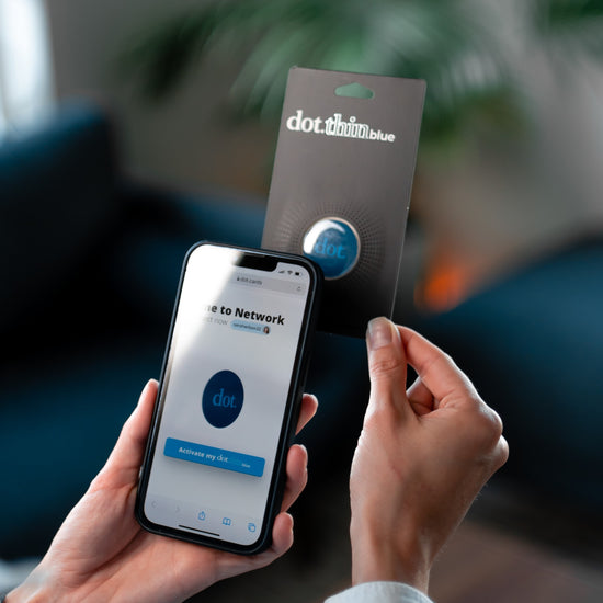 Simply scan the QR code located on the back of the package to get your dot.Profile set-up and ready to connect with your network.