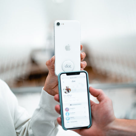 A dot.device seamlessly transfers all of the information on your dot.Profile with a single tap onto someone else’s phone. Your dot.Profile is fully customizable —including a bio, social media links, payment info, and more— and enables you to share every important detail about you and your business with your network.